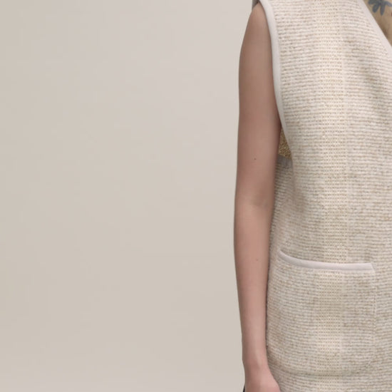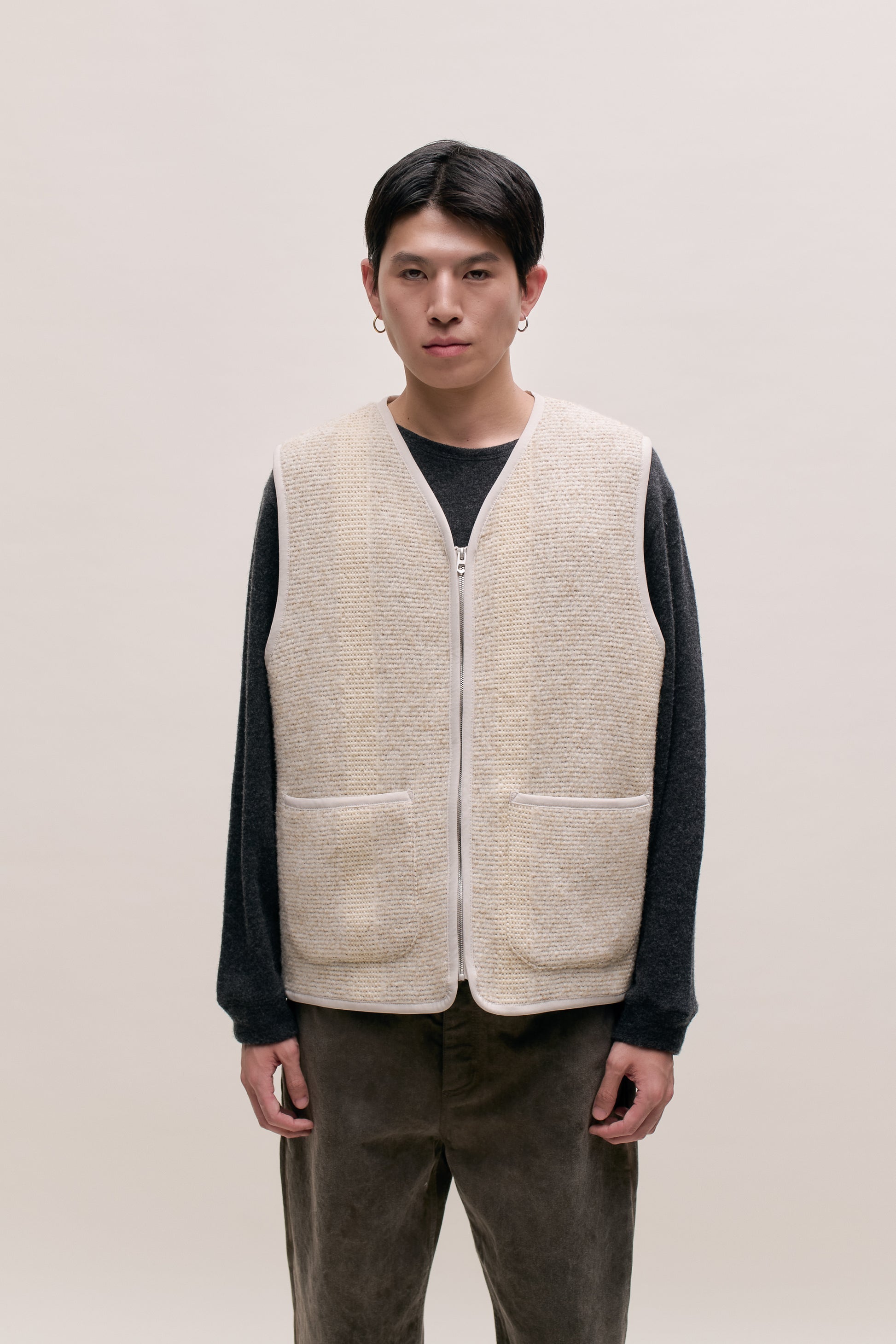 €300PRODUCT: The Valur Wool vest features a boxy fit, v-neckline, patched pockets and a straight hemline. Perfect for layering.