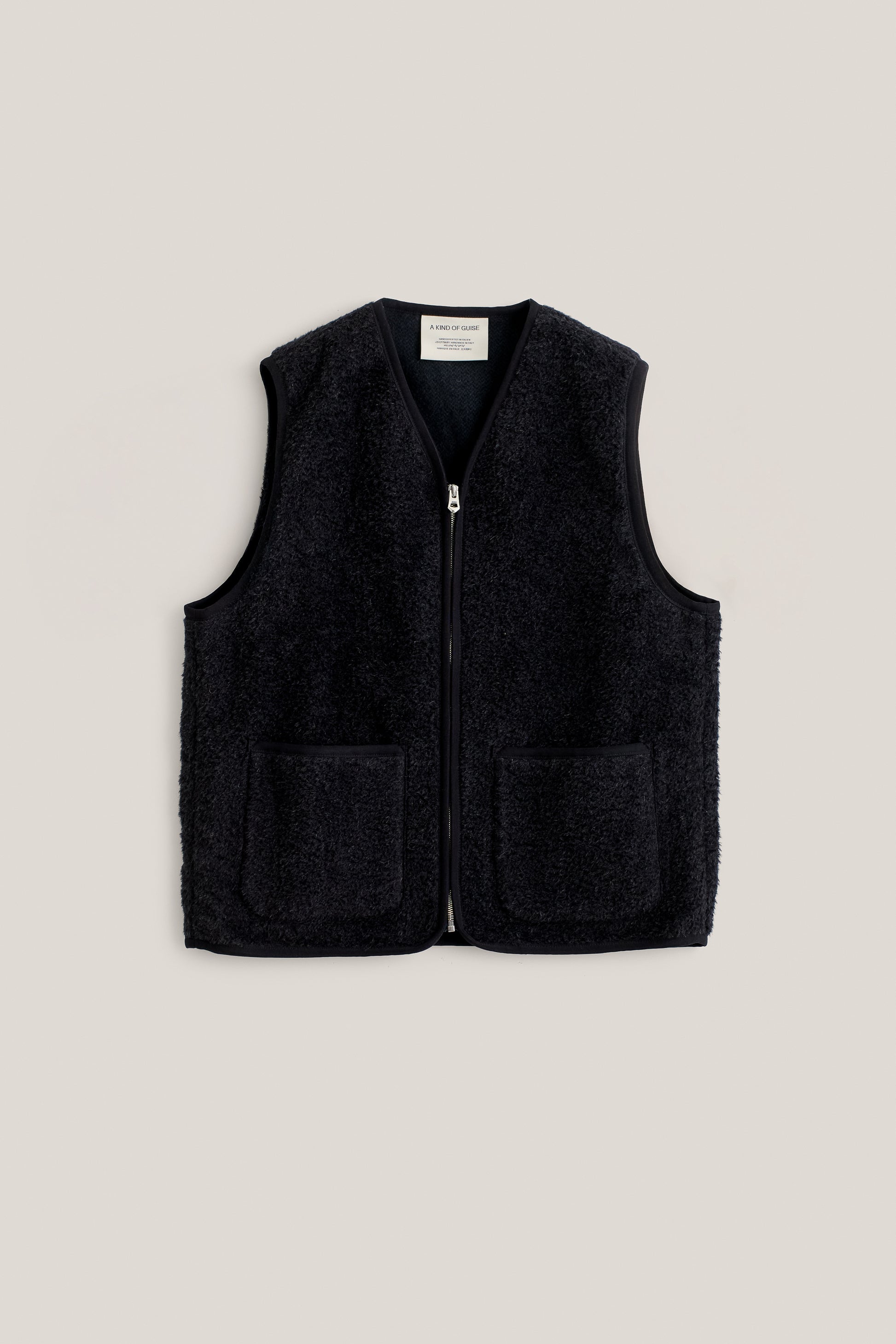 PRODUCT: The Valur Wool Vest features a boxy fit, v-neckline, patched pockets and a straight hemline. Perfect for layering.