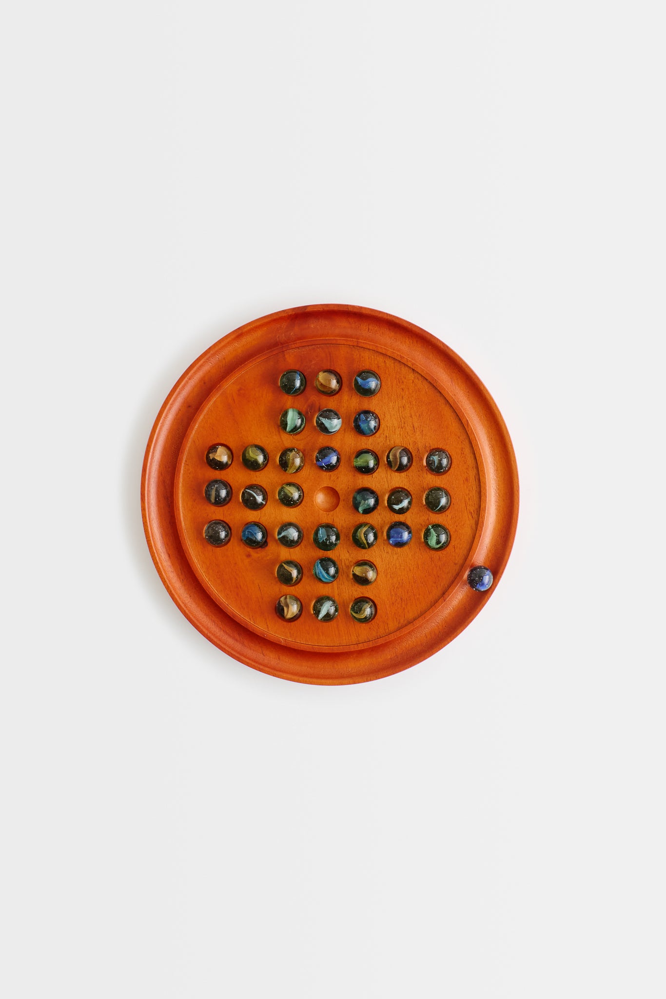 A handcrafted classic, this wooden solitaire game features a smooth circular board paired with swirling glass marbles. Made in Sri Lanka, it’s both a meditative pastime and a beautiful object for your coffee table or shelf.