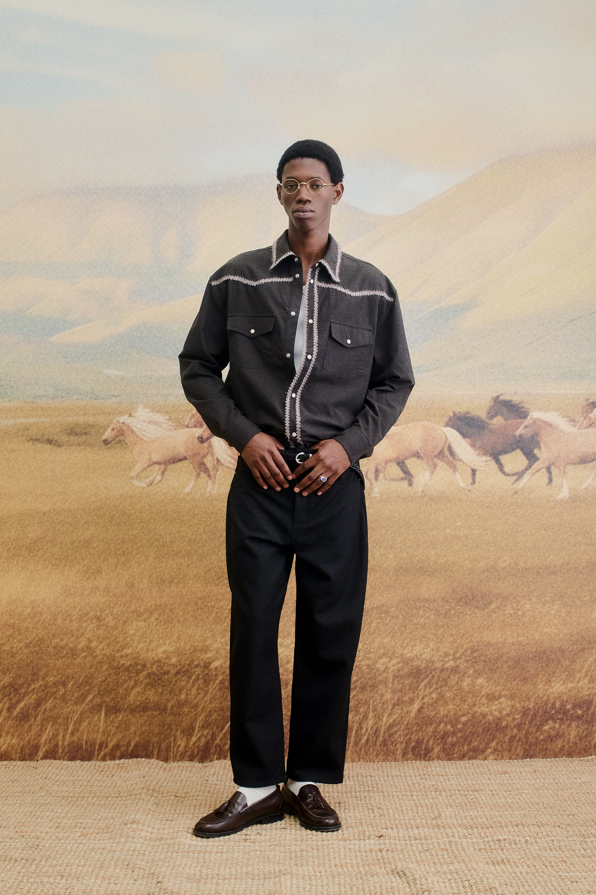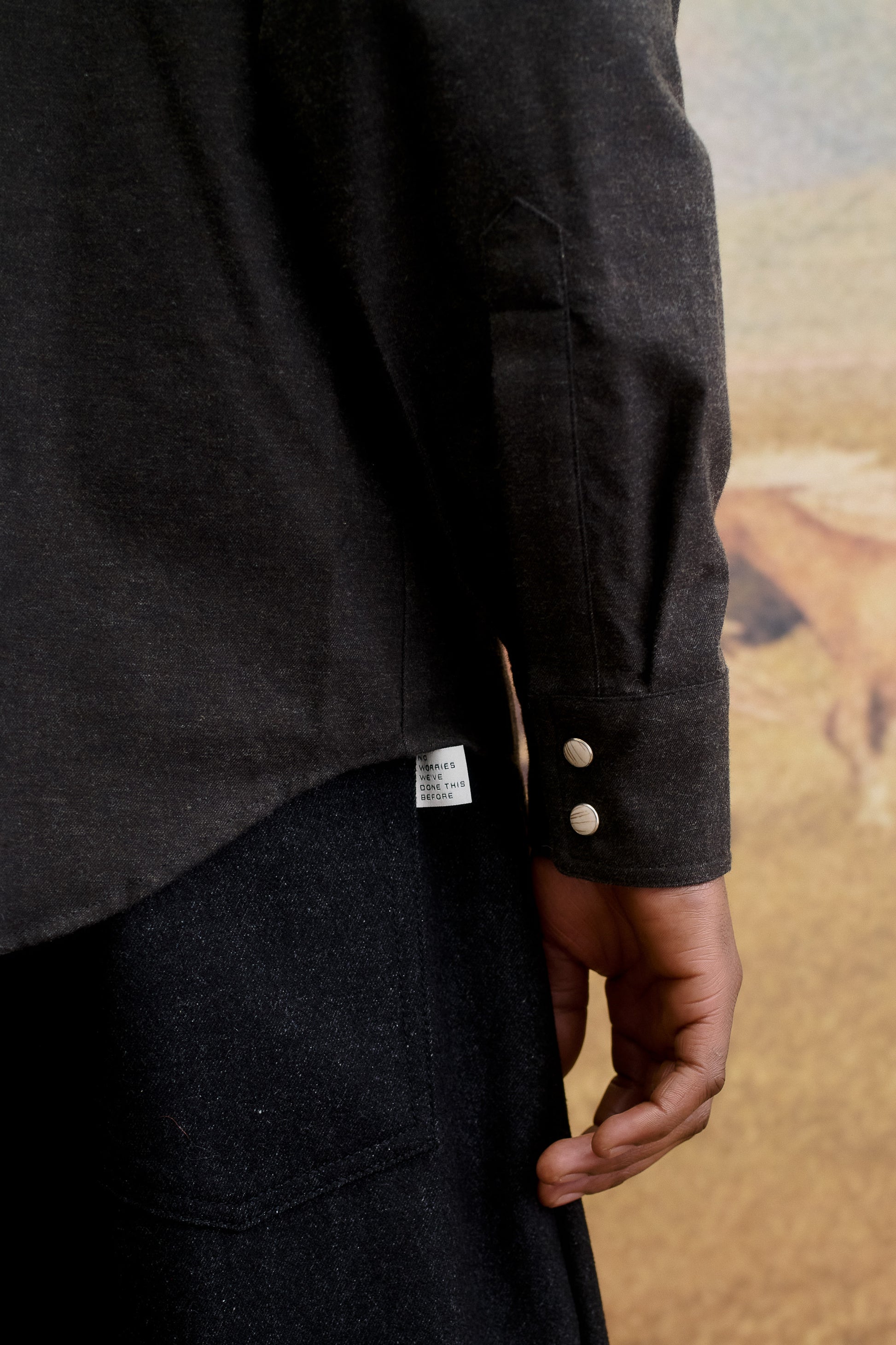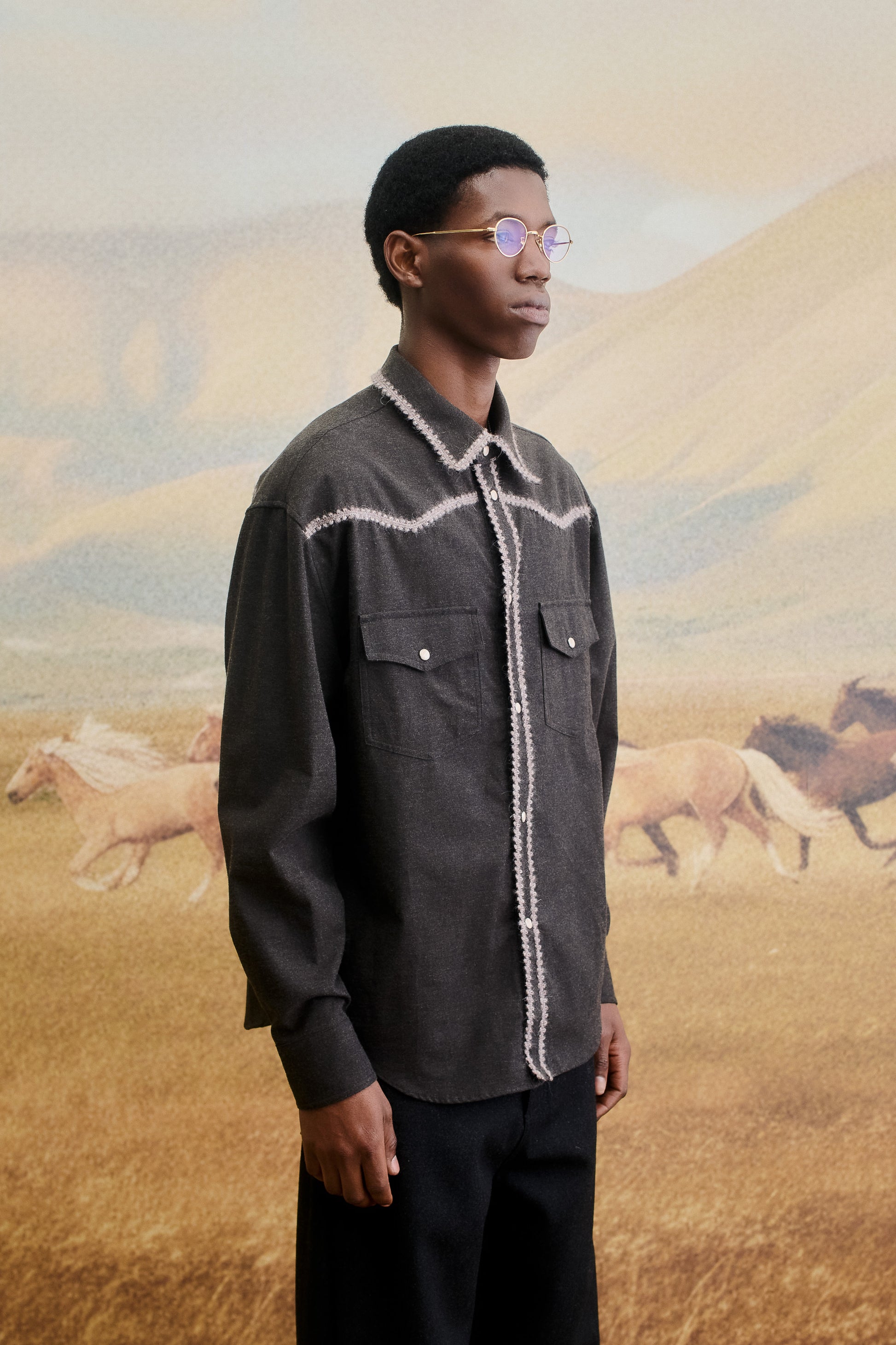 PRODUCT: The Yahi Shirt features a regular fit with a pointed yoke, a snap button closure and two flap chest pockets, added with a decorative contrast trim, blending western detailing with a refined finish.
