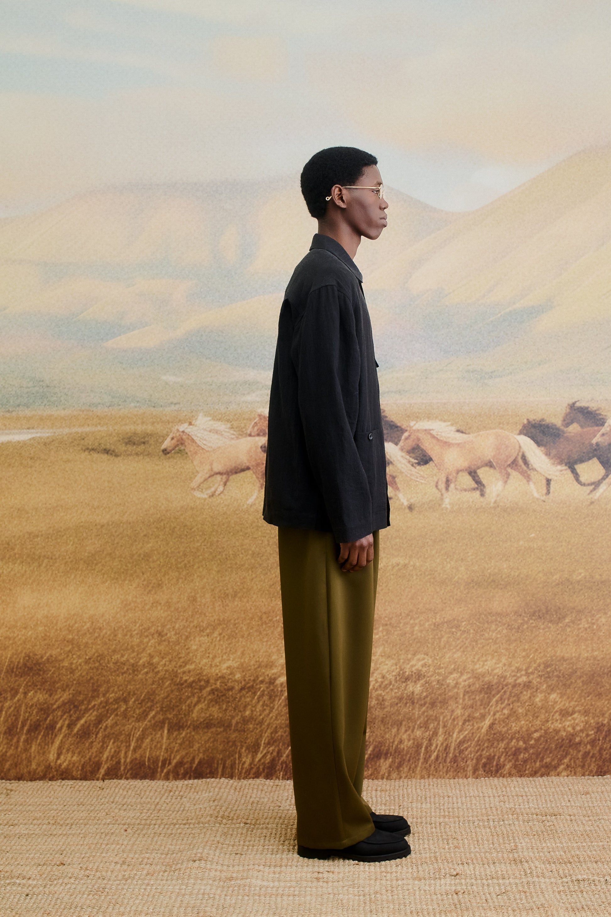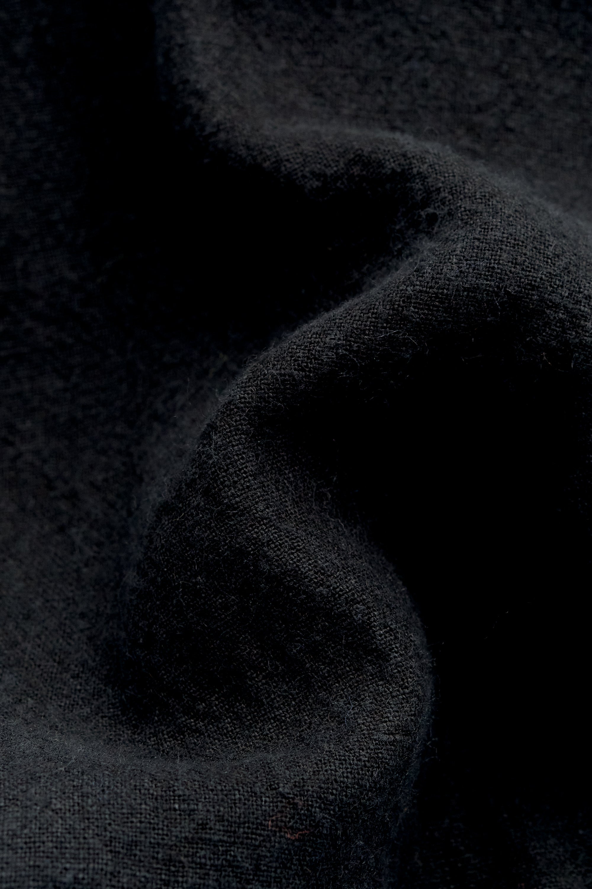 FABRIC: This mid weight fabric made in Japan is a refined blend of linen, ramie, and wool, offering a natural crepe-like touch with warmth suited even for winter. Both warp and weft are woven from linen–wool blended yarns, highlighting the material’s organic texture and appearance. Carefully dyed and finished in Japan by skilled artisans, the process avoids harsh chemicals and treats the fabric gently over time.