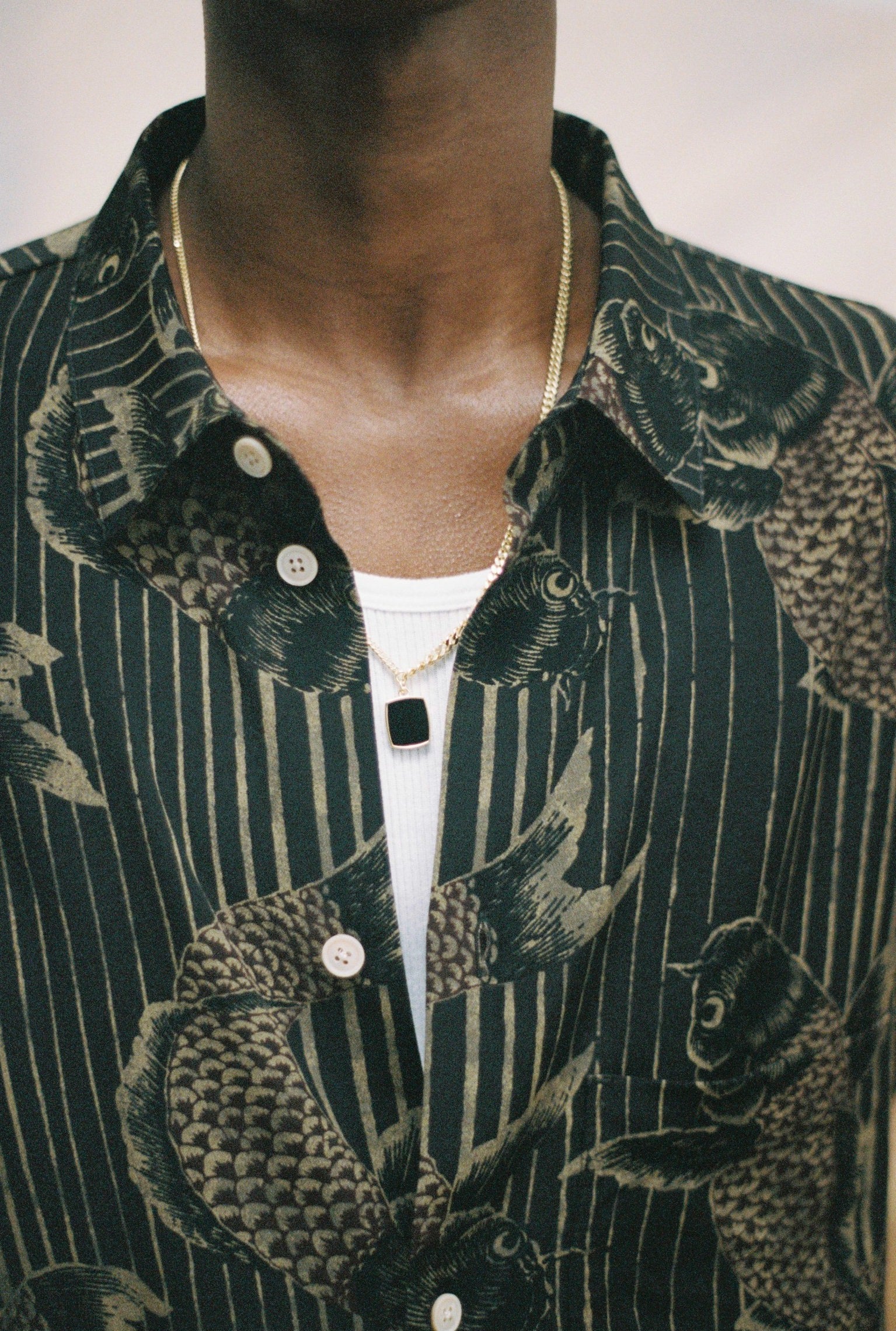 MATERIAL: Crafted from solid 925 sterling silver, this necklace features a 4mm armored chain and a 2.1mm anchor chain joined in a half-and-half layout. A polished blue agate stone pendant completes the piece. The silver’s cool tone and the vibrant tone variation create a restrained but distinctive combination.